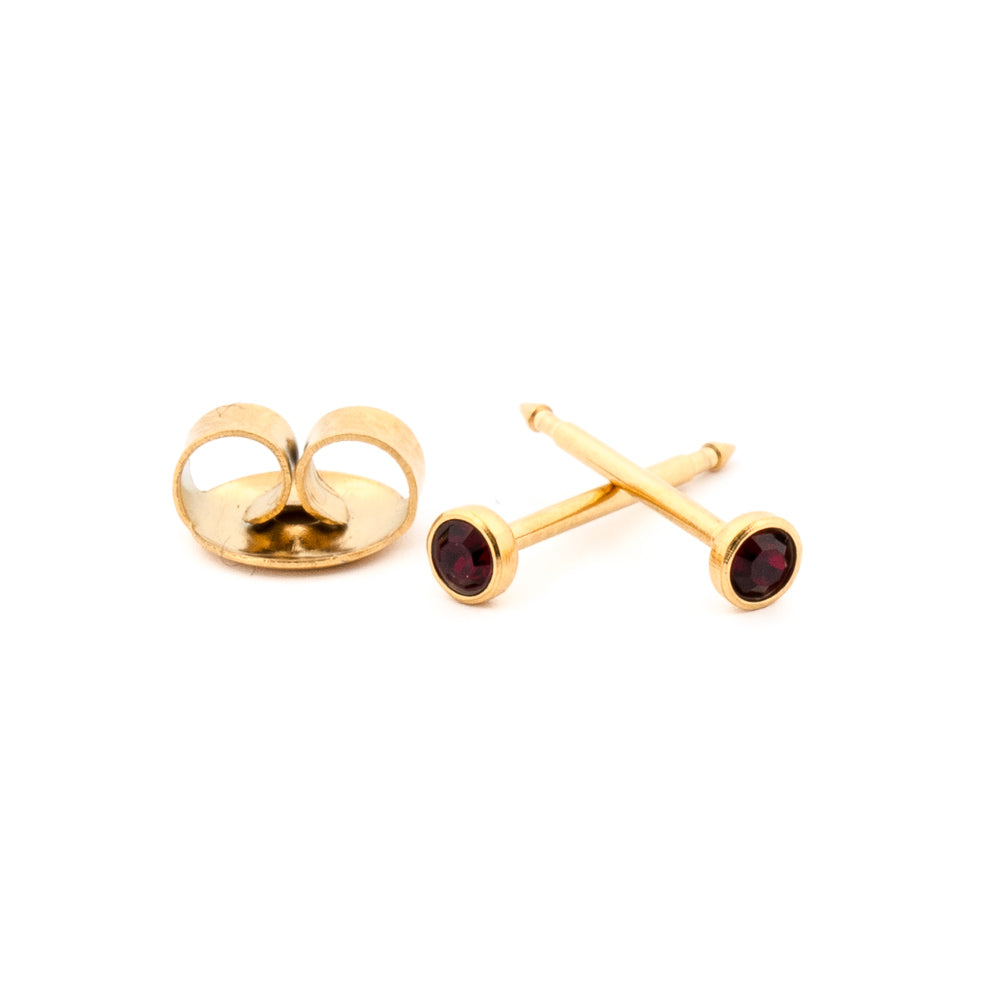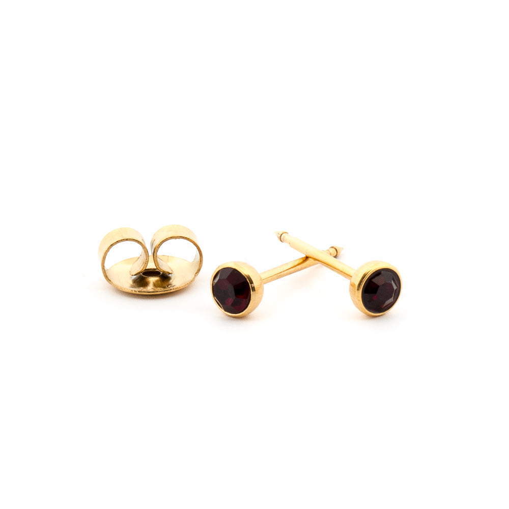 The Surgical Steel January (Garnet) Gold Earrings are a beautiful blend of sophistication and strength. Each earring features a rich garnet, the birthstone for January, set in a polished gold-tone surgical steel base. The deep red color of the garnet symbolizes passion, energy, and protection, making these earrings not only stylish but also meaningful.