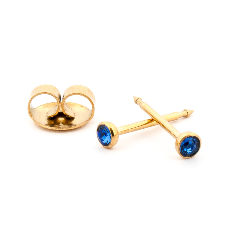The Surgical Steel September (Sapphire) Gold Earrings are a stunning blend of timeless elegance and durability. Each earring features a deep blue sapphire, the birthstone for September, set in a polished gold-tone surgical steel base. The rich blue of the sapphire symbolizes wisdom, loyalty, and serenity, making these earrings both meaningful and luxurious.